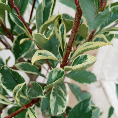 Ce photinia sur tige attire tous les regards avec son feuillage persistant panaché de vert, crème et rose, illuminé au printemps par de jeunes pousses rose vif spectaculaires. En mai, il offre une floraison en petites ombelles blanches, mellifères. Son port en boule élégante sur tronc crée un point focal original, idéal en pot sur une terrasse ou en massif structurant. Un arbre d’ornement aussi graphique que facile à vivre.