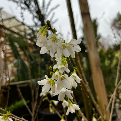 Le Prunus ‘Yamadei’ offre au printemps une floraison délicate en clochettes blanches, légères et abondantes, qui annoncent avec grâce les beaux jours. Son feuillage finement découpé, vert tendre, se pare de superbes teintes orangées à rouges en automne. Compact et élégant, il est idéal pour les petits jardins apportant charme et saisonnalité tout au long de l’année.