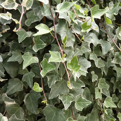 Le lierre commun ‘Glacier’ est une variété décorative au feuillage panaché vert, gris et blanc, qui illumine murs, clôtures et massifs toute l’année. Sa floraison automnale en petites ombelles vertes, discrète mais mellifère, est suivie de baies noires non comestibles, appréciées des oiseaux pour leur aspect décoratif et nourricier. Vigoureux, persistant et très facile à vivre, il apporte structure, fraîcheur et élégance naturelle au jardin comme en pot.