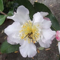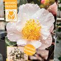 Le camélia d’automne ‘Hinode-Gumo’ illumine la fin de saison par sa floraison délicate et abondante, composée de grandes fleurs semi-doubles blanches légèrement bordées de rose, subtilement parfumées. Sa magnifique floraison, apporte de la couleur lorsque le jardin s’endort.