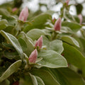 Le cognassier ‘Champion’ séduit au printemps par ses grandes fleurs blanches rosées, simples et délicatement parfumées, qui laissent place à de gros coings jaunes et parfumés, à récolter en octobre, parfaits pour gelées, compotes et pâtisseries. Son feuillage vert lustré devient jaune doré en automne, apportant une touche lumineuse au verger. Rustique et facile à cultiver, il allie beauté ornementale et gourmandise au jardin.