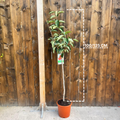 Le Diospyros kaki ‘Jiro’ est l’une des variétés les plus précoces, offrant dès octobre de gros fruits orangés, croquants, sucrés et savoureux, à déguster frais, en salade ou en pâtisserie. Sa floraison printanière discrète en petites clochettes crème s’accompagne d’un feuillage vert lustré, qui s’embrase de rouge et d’orange à l’automne. Ornemental, rustique et gourmand, il permet de profiter des plaisirs du kaki avant la plupart des autres variétés.