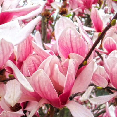 Le Magnolia x soulangeana est un incontournable du printemps avec sa spectaculaire floraison en grandes tulipes rose pâle à rose pourpré, très légèrement parfumées, qui s’épanouissent avant l’apparition du feuillage. Son feuillage caduc vert foncé prend parfois de jolies teintes dorées à l’automne, tandis que son port arrondi et ses branches sculpturales lui confèrent un charme en toutes saisons. Idéal en isolé, il apporte une touche majestueuse et poétique à tout jardin.
