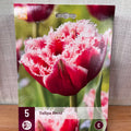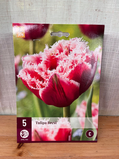 La tulipe Brest charme par ses fleurs doubles aux teintes éclatantes de rouge et de blanc, offrant un contraste spectaculaire.